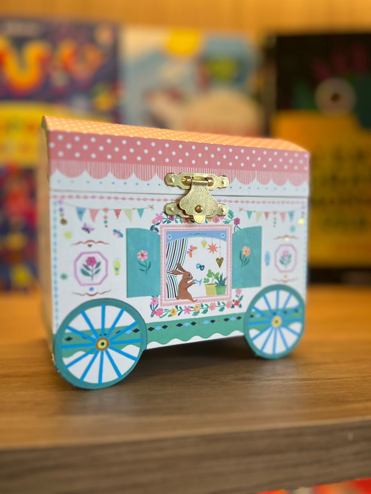 A magia da música e da decoração em uma só peça: a Caixa de Música Caravana Encantada traz detalhes delicados e melodia suave para encantar qualquer ambiente.