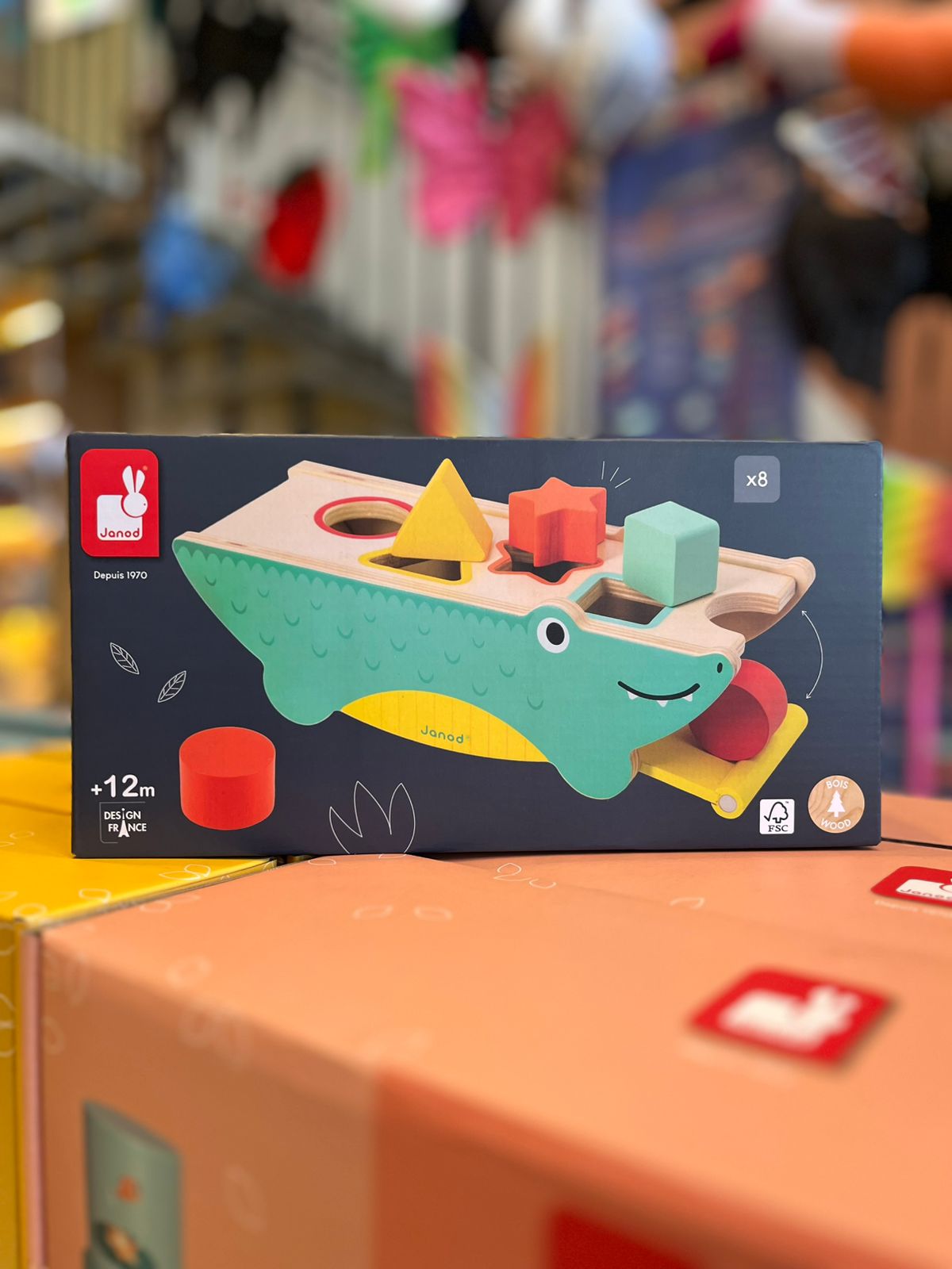 O crocodilo faminto está à procura de formas para se banquetear! Aqui está uma caixa de formas de madeira original que entreterá crianças a partir dos 12 meses por longos períodos!