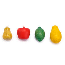 Contém 4 frutas de madeira maciça: maçã, pera, manga e abacate