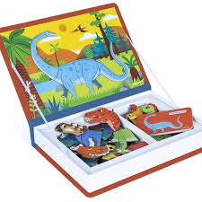 Este jogo de cartão transportará crianças a partir dos 3 anos para o reino dos dinossauros com 40 peças magnéticas e 10 cartões, cada um com o nome latino de um dinossauro. Uma vez aberto o livro, o objetivo é montar uma imagem do dinossauro mostrado no cartão usando os ímanes fornecidos. Todas as peças magnéticas são completamente intercambiáveis, para que as crianças possam divertir-se durante horas a inventar animais ainda maiores e mais assustadores do que os dinossauros reais! Ajuda as crianças a desenvolver a imaginação e a motricidade fina.