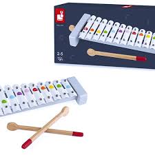 Xilofone de madeira com 12 peças férricas e 2 baquetas. Vermelho, amarelo, verde, laranja... "Confetti", uma linha completa de instrumentos musicais com designs Pop N' Rock! "Confetti" desperta todos os sentidos e apresenta aos músicos mais jovens as alegrias da improvisação musical.