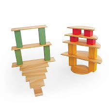 Conjunto de blocos de madeira com formas variadas. Ideal para construções criativas que desenvolvem coordenação motora, percepção espacial e imaginação.