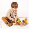 Postinho Maleta da NewArt é um brinquedo de madeira criativo e portátil que se transforma em um completo posto de combustível.