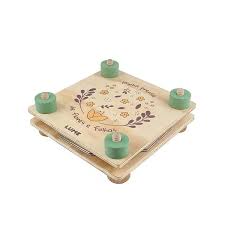Prensa de madeira para secagem de flores e folhas. Estimula o contato com a natureza, a criatividade e a observação atenta do ambiente.